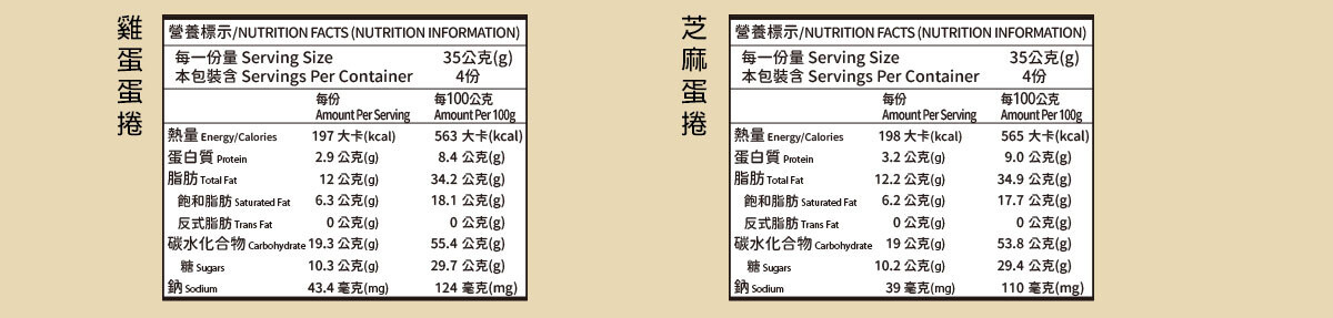 經典雞蛋成分: 小麥粉、雞蛋、白砂糖、植物油、玉米粉、食用鹽、食用香料。